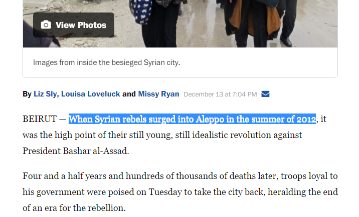 In their article, “Endgame in Aleppo, the most decisive battle yet in Syria’s war,” they admit (emphasis added):