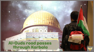 Exclusive - Only Pictures - Top Pilgrim wearing the Iraqi flag near a photo depicting the Dome of the Rock during Arbaeen. Child holding ...Read more