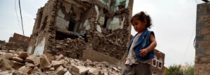 A Yemeni girl walks on the rubble of a building destroyed in an airstrike carried out by the Saudi-led coalition ...Read more