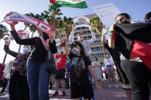 People gather to protest for the Palestinian people in the ongoing Middle East conflict between the Palestinians and Israelis during ...Read more