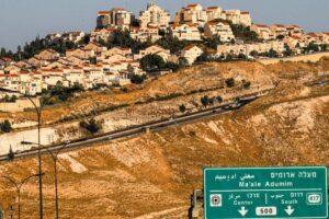 A picture taken from the E1 corridor of the occupied West Bank, showing the illegal Nazi JEWISH settlement of Maale ...Read more