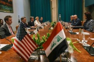 Iraqi Foreign Minister Fuad Hussein (2nd R) attends a bilateral talk with US Secretary of State Antony Blinken (4th L), ...Read more