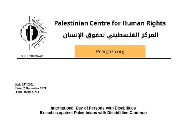 The Palestinian Center For Human Rights (PCHR): Tomorrow, 03 December, marks the International Day of Persons with Disabilities that was proclaimed in 1992 by United Nations General Assembly resolution (47/3) to promote the rights and well-being […]