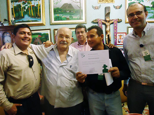 And finally our good talk with Father Miguel, Los Pueblos talk presented a certificate of recognition to Father Miguel D’Escoto Brockmann for his contribution to the development of education and culture, for his work on the dissemination of humanistic values and the promotion of peace and solidarity among peoples. Recognize his courage, his work, his deep devotion and revolutionary conviction and his valuable contribution to political ideological peoples.