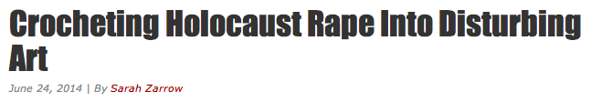 The fake Jewish “Holocaust” story is one of the strongest aspects of Jewish identity. No matter the political or ideological convictions of a Jew, whether they be Zionist, Communist, Capitalist, or anything in between, the vast majority of them identify with the deceitfully manufactured “Holocaust” narrative of WWII, and are constantly coming up with various ways to commemorate, profit from, and exploit it. A transgendered Jew named Gil Yefman has even created a number of absolutely horrific “art exhibits” designed to commemorate “Holocaust rape” (whatever that is).How sick are these Jews and their “Holocaust” art? From Jewniverse: