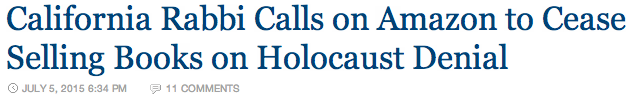 NOVANEWSIn an effort to further intensify the Jewish tyranny strangling America and systematically destroying all of the key liberties specifically sanctioned in the Bill of Rights, a rabbi in Sacramento, California is demanding that Amazon ban “Holocaust denial” books in its popular online marketplace. The Algemeiner reports: