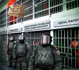 Questioning “The Holocaust®” in anycapacity can get youimprisoned alongsidehardened convicts forthe criminal action of“thought crime.” |