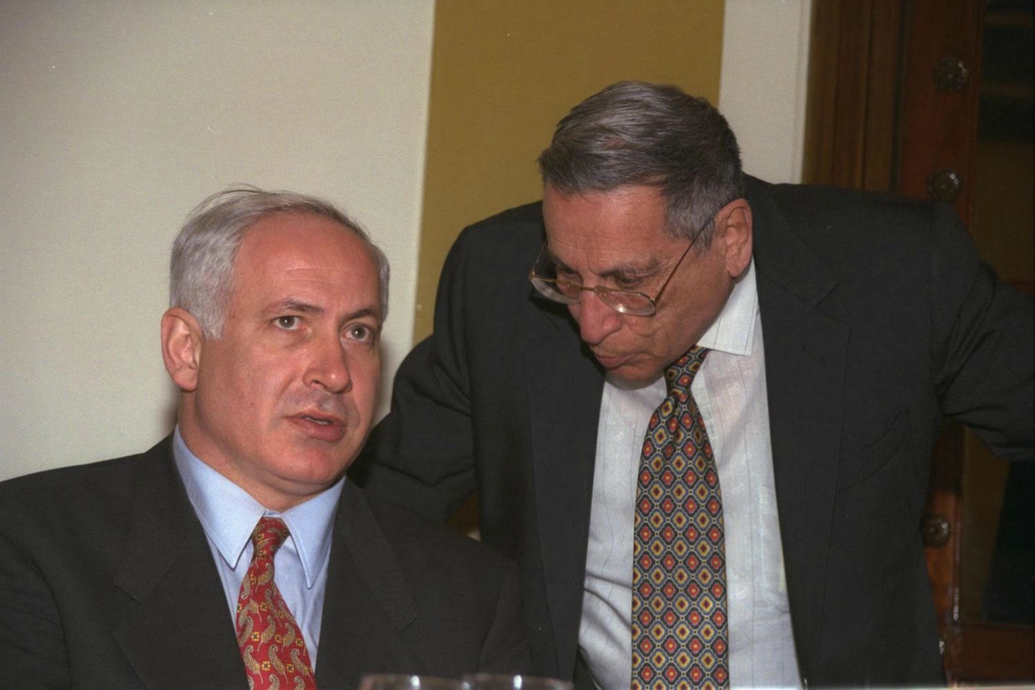 Rehavam Ze’evi (right) with Prime Minister Benjamin Netanyahu in 1999.Government Press Office |