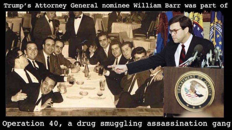 According to former Bush-CIA black ops specialist Chip Tatum, Barr was part of Operation 40, an Agency-linked criminal gang that moved huge quantities of drugs and was involved in many high-level political assassinations, including those of the Kennedies, Swedish Prime Minister Olof Palme, and dozens of others. Ironically, Trump—who tossed a few rhetorical punches at the Bush Crime Family during the 2016 Republican primaries—has just nominated a man who represented the Bush CIA drug cartel, both within the CIA itself (1973-1977) and later when he served as “Opium Poppy” Bush’s Attorney General.