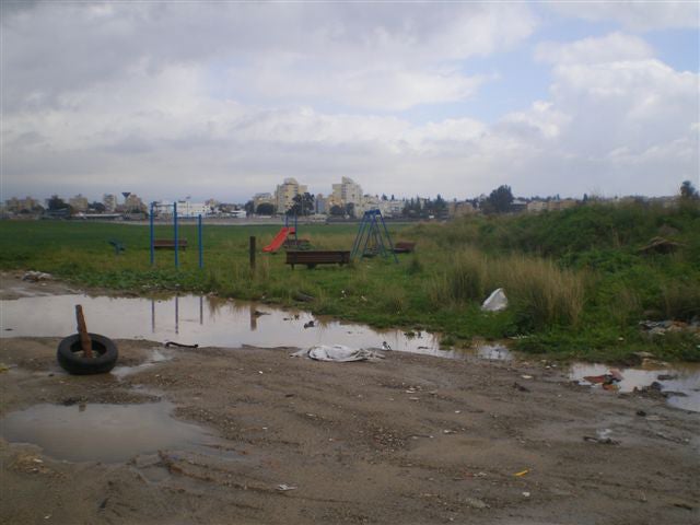 This playground, funded by a nongovernmental organization, was erected in 2006 in Dahmash. Once it was erected the Israeli Land Administration issued demolition orders on the grounds that the playground was constructed without a permit.